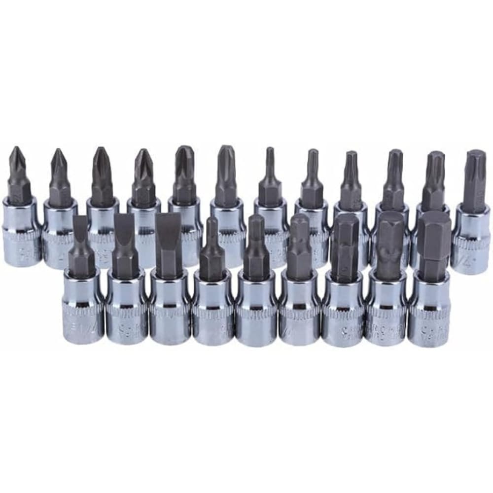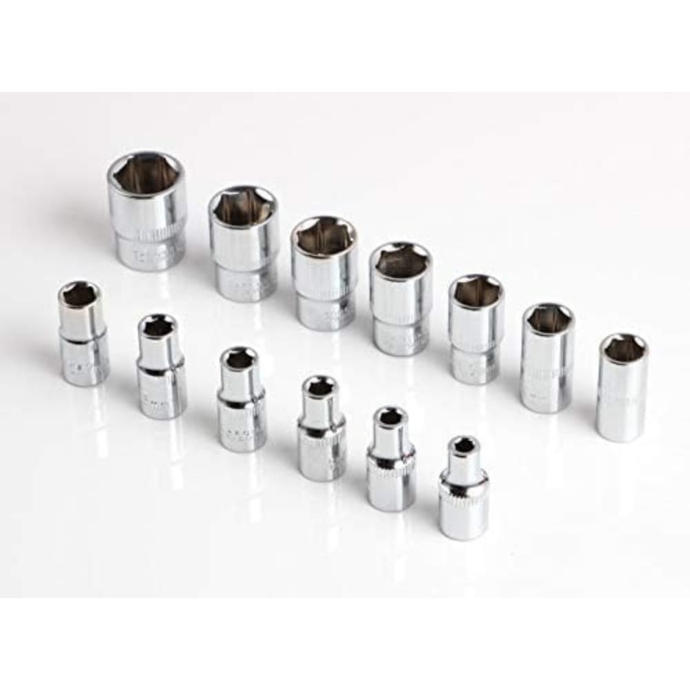 • Incluye tamaños métrico y SAE con toma de transmisión de 1/4 ": incluye tamaños métrico y SAE con toma de 1/4", zócalo de 0.157 in a 0.551 in y juego de brocas para aplicaciones versátiles.