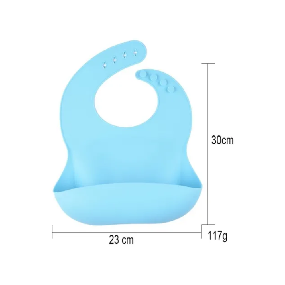 Hecho con silicona suave de calidad alimentaria, es seguro para el uso diario y no contiene BPA ni sustancias nocivas. Su diseño liviano, impermeable y flexible lo hace cómodo y fácil de usar, adaptándose perfectamente al cuello del bebé sin causar molestias.