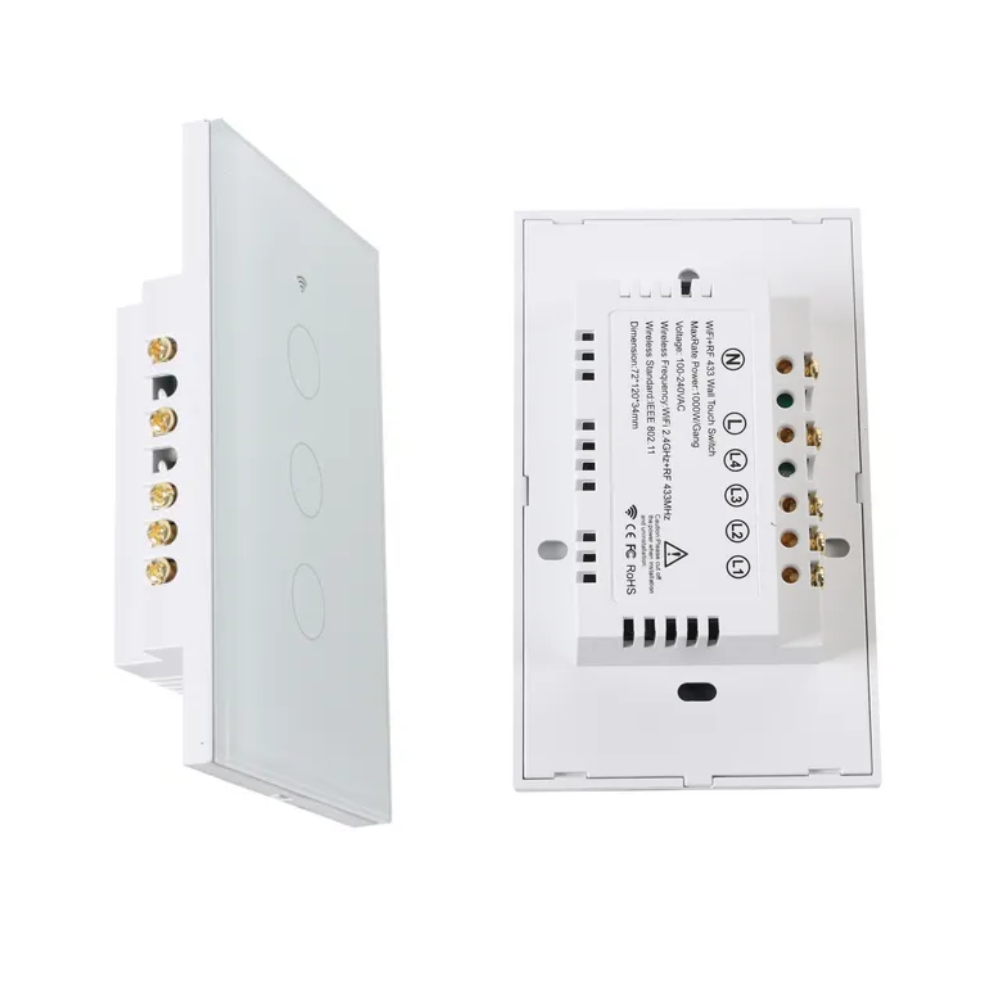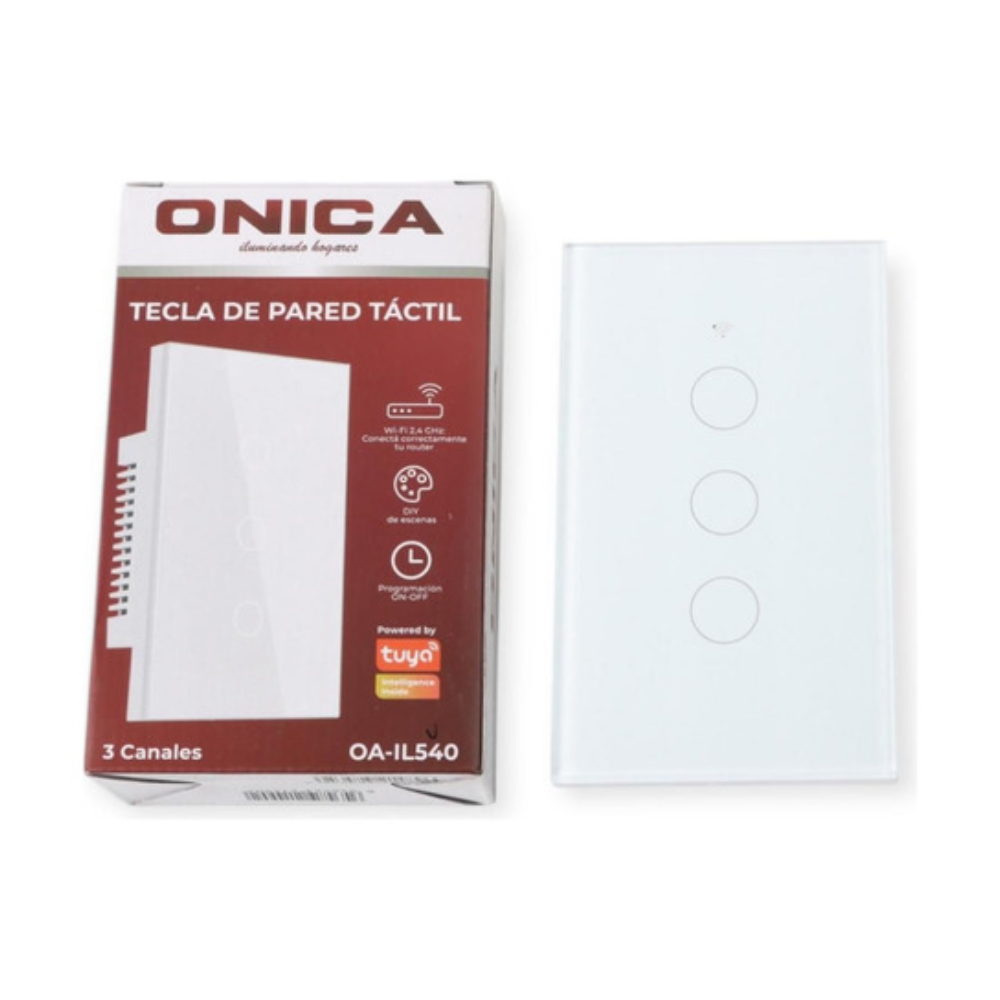 Modernizá tu hogar con esta tecla táctil inteligente de 3 canales, diseñada para controlar luces o dispositivos desde tu celular o por voz. Con un elegante frente de vidrio templado, combina funcionalidad y estilo, aportando un acabado sofisticado a cualquier ambiente interior.
