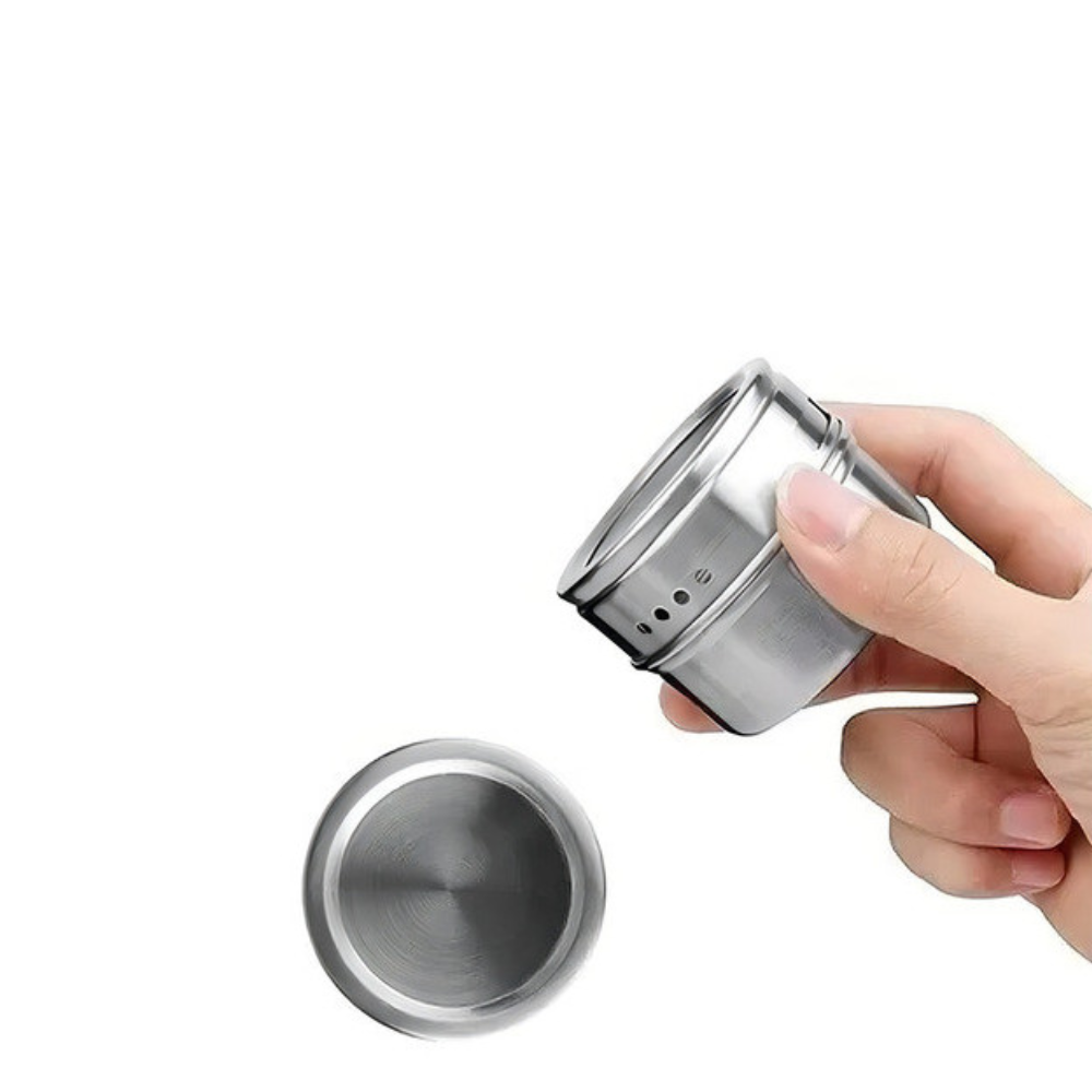 ✅ Diseño imantado: tanto los frascos como la base son magnéticos, ideales para mantener todo en su lugar sin esfuerzo.