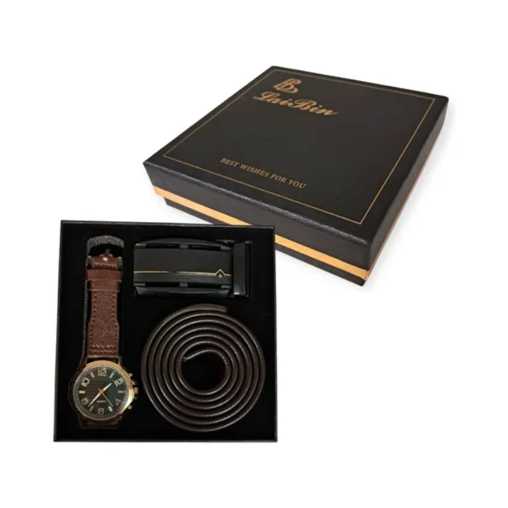 Eleva tu estilo con este conjunto ideal para el hombre moderno, que combina funcionalidad y elegancia. Este set incluye un reloj distintivo, Cinturon Con Hevilla. Fabricados con materiales de calidad.
