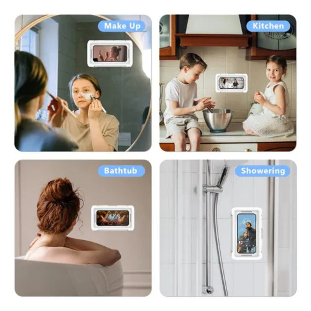 Resistente al agua y antivaho: impermeable, este soporte para teléfono de ducha ofrece un excelente sellado impermeable y una pantalla antivaho de alta transparencia. Perfecto para ser utilizado en baño, cocina o dormitorio. Nota: no sumerjas completamente el soporte del teléfono en agua.